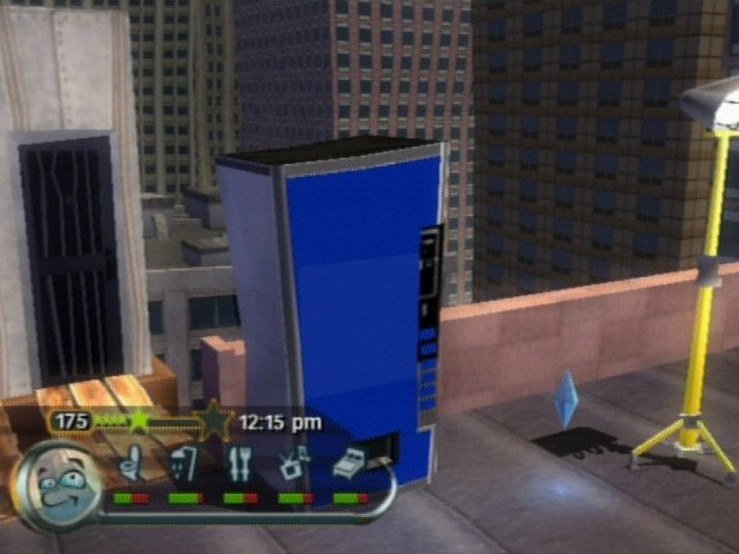 Besides the goal-based game play, you can play the Urbz in a somewhat classical Sims way. You can build some walls (though you can't change the external walls, as they have fixed roofs on them), decorate them, and buy and place furniture. Unfortunately the pre-made districts are often already so full of objects, you have to delete some of them to place something new. What's hard about actually placing the objects is that you can't see from which way the urb will use the object. It may be obvious for chairs and so, but it's less clear for skill objects, for example. Trial and error is the only solution in that case.