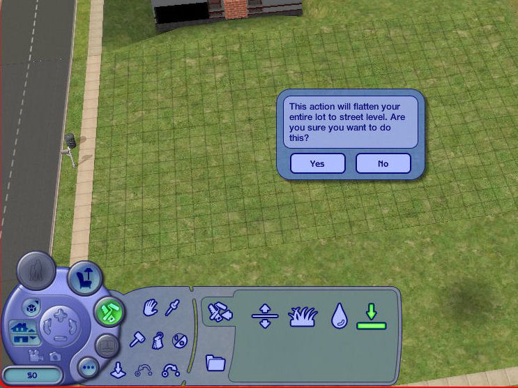 This new feature allows you to level your terrain to that of the front sidewalk. Instead of having to select the "level terrain" icon and drag the mouse across the lot, one click of this new button and it's done.